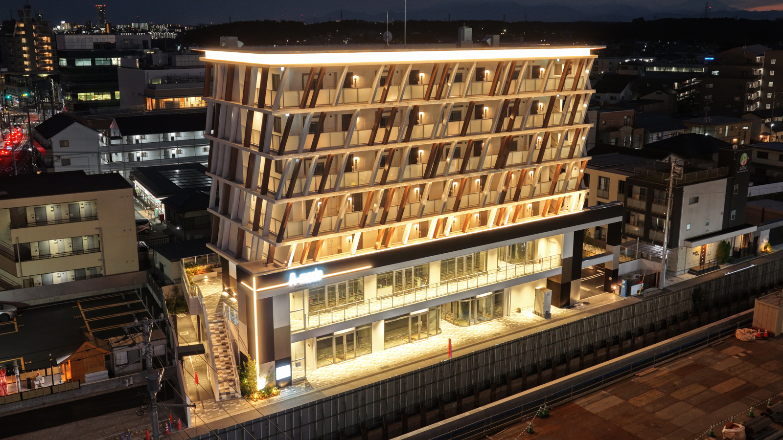 昼はポップで快活な印象、夜はライトアップにより幻想的な陰影をまとう